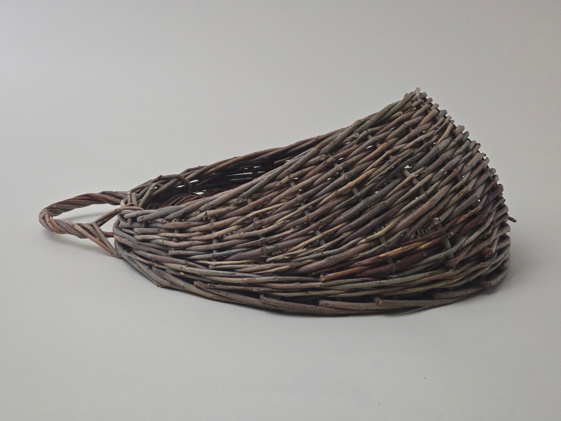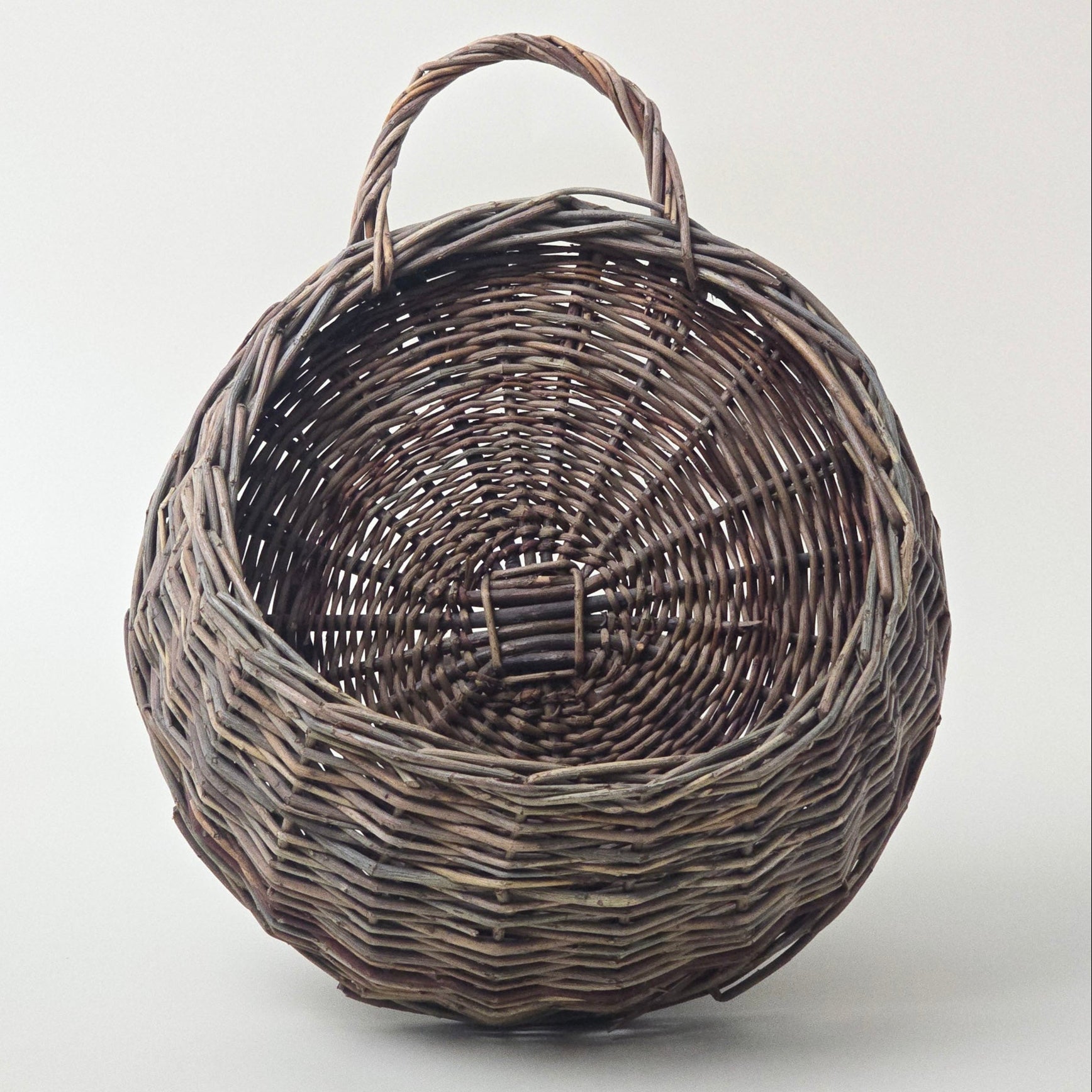 Elevate your space with the earthy elegance of this antique handwoven gathering basket. Crafted from naturally aged willow, its richly patinated finish and time-softened curves speak to years of careful use and quiet beauty. The generous bowl shape and sturdy handle reveal its utilitarian origins—perhaps once used in harvests or market days—but today, it serves equally well as a sculptural focal point or functional décor piece.